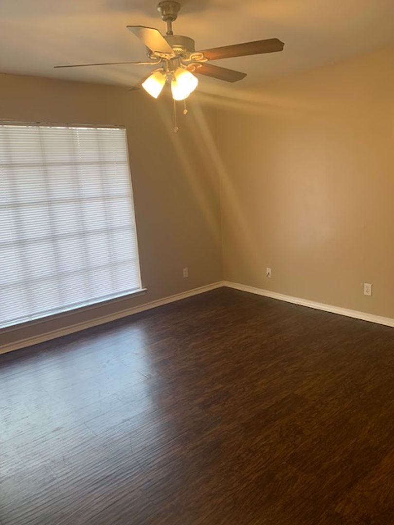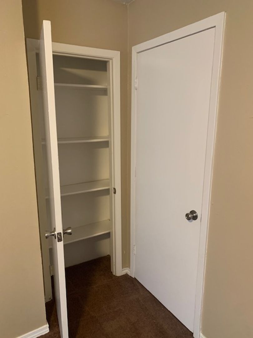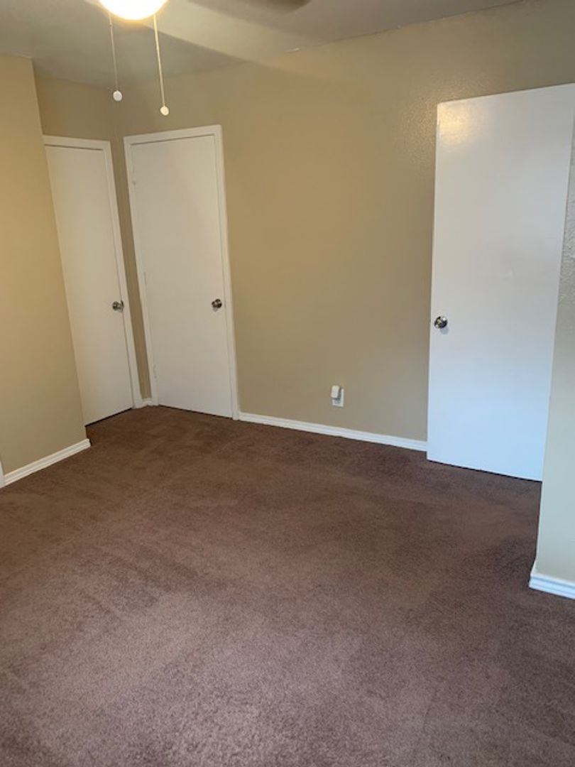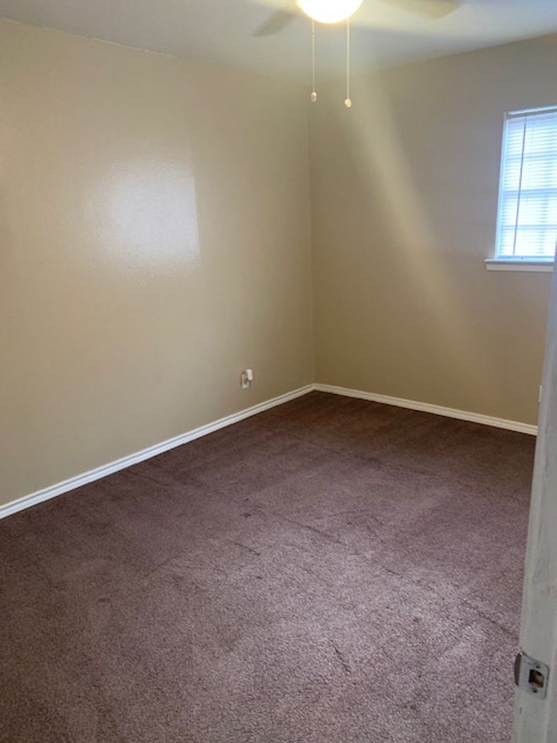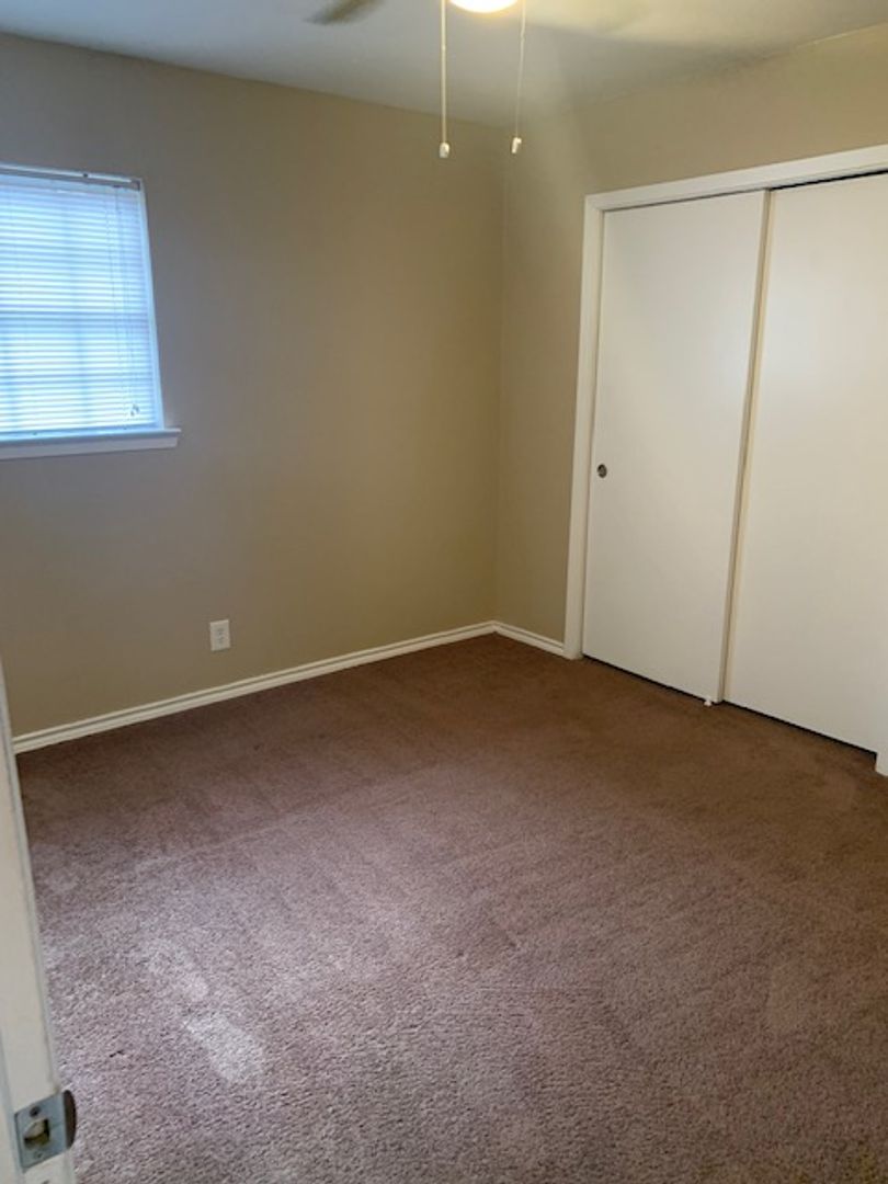 This is an upstairs unit, vinyl wood flooring throughout unit, with tile in bathrooms and carpet in bedrooms only. 1/2 bath in main bedroom, walk-in closet in second bedroom, storage closets in both bedrooms, all black appliances in the kitchen with granite counter tops. Tenant is responsible for electric and cable/internet if wanted. We pay water and trash.